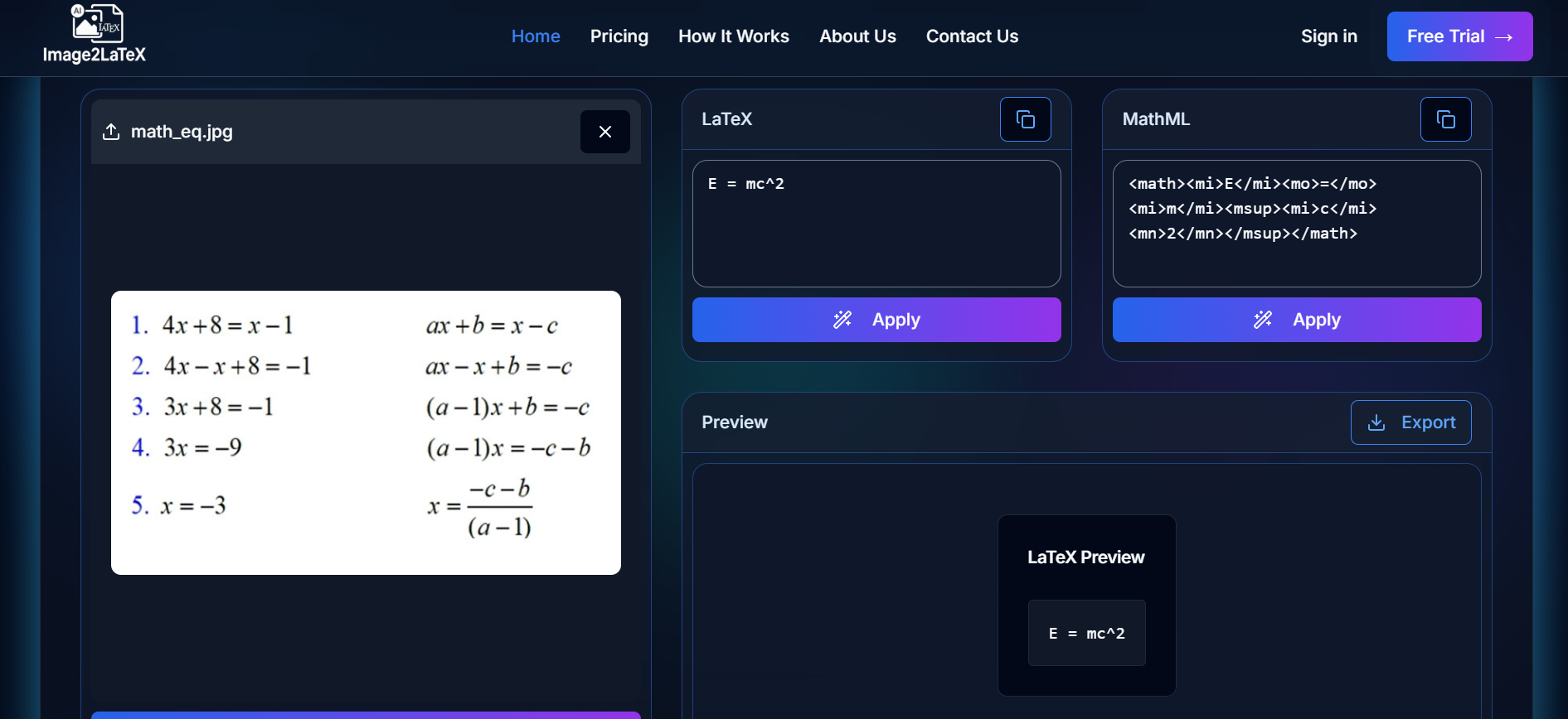 Advanced tool that converts images of mathematical equations into LaTeX code, making mathematical content accessible and editable. Essential for educators and researchers.